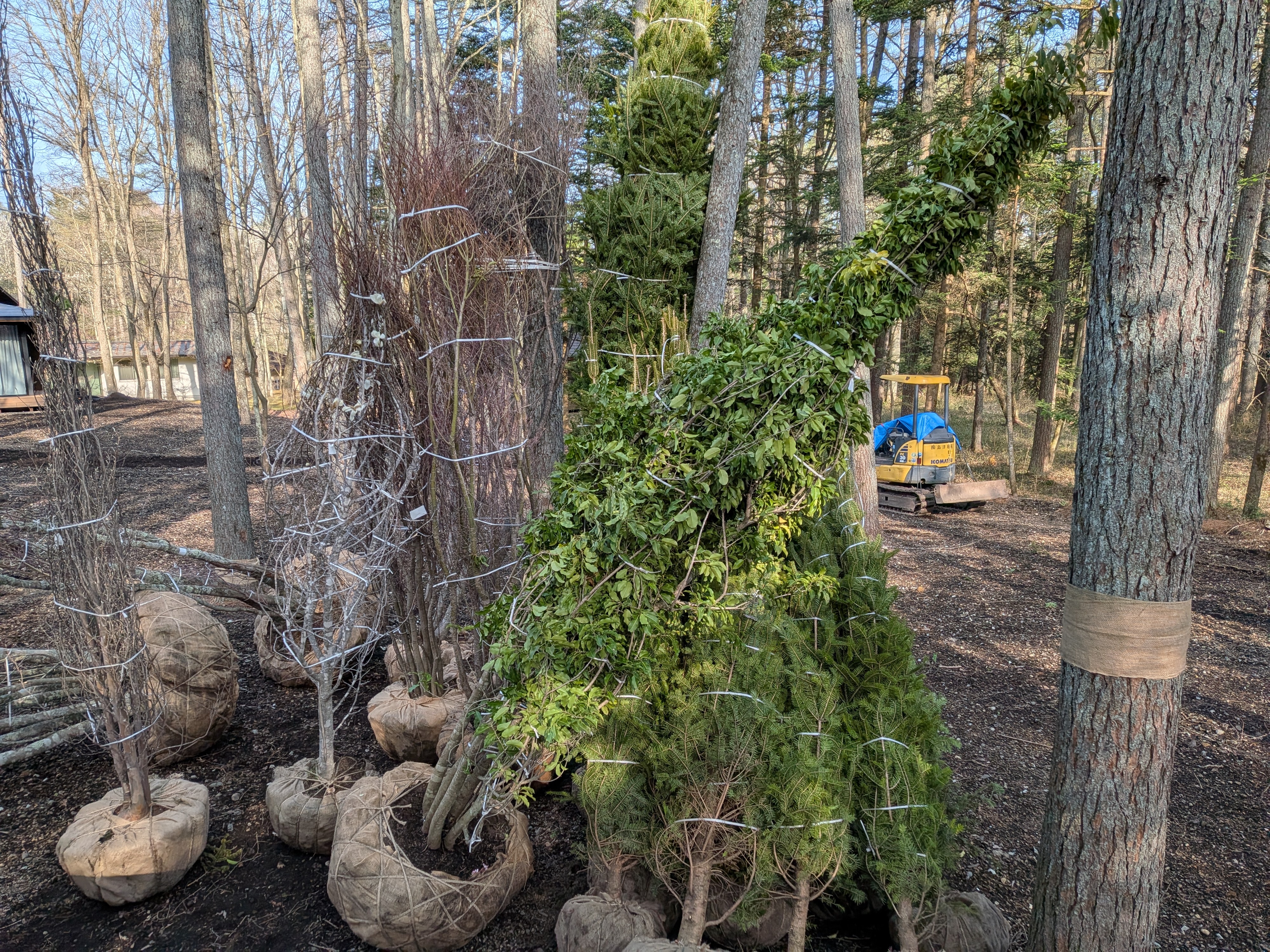 本日の作業 リース屋さんで4トンクレーンを借り嬬恋の植木屋さんから植木運搬2(2往復シャラ、モミ、ソヨゴ、ニレ、コブシ、サクラ、モミジ、ヤマボウシ、マルバノキ、アセビ)