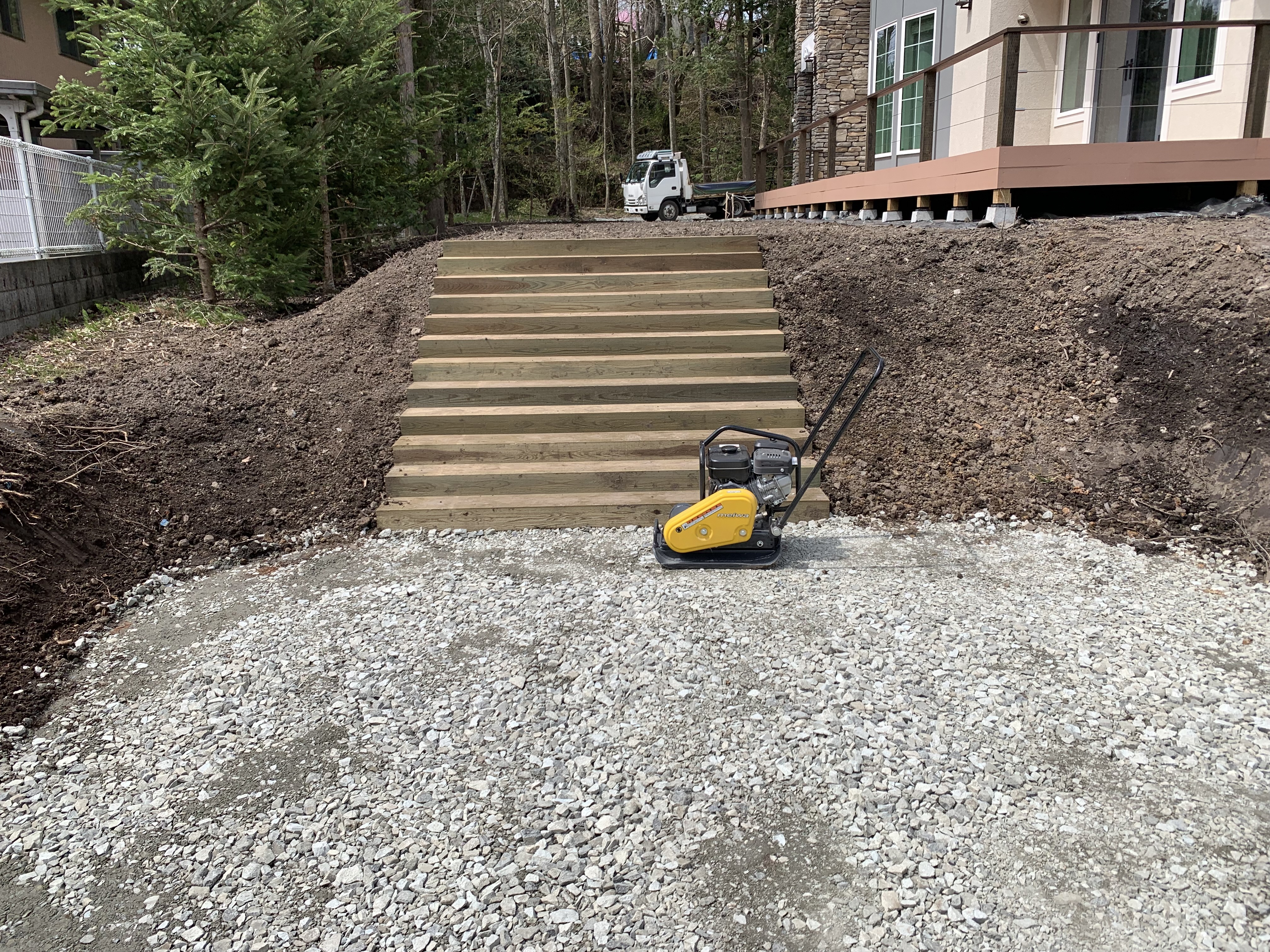 UC様邸で束石を設置してからリース屋さんに行き、プレート引き取ってからABN様邸