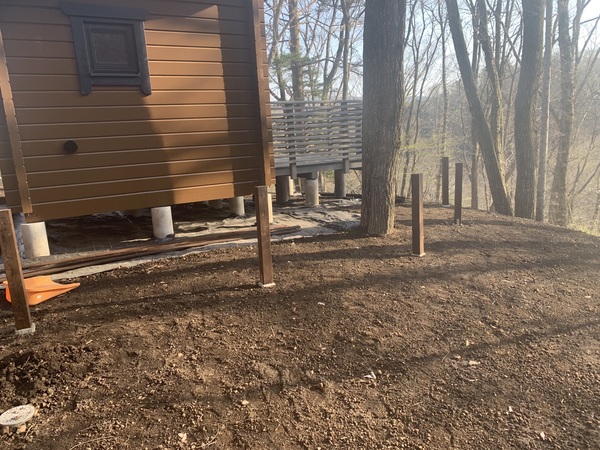 フェンス柱切断、設置(20本)、ペンキ塗り