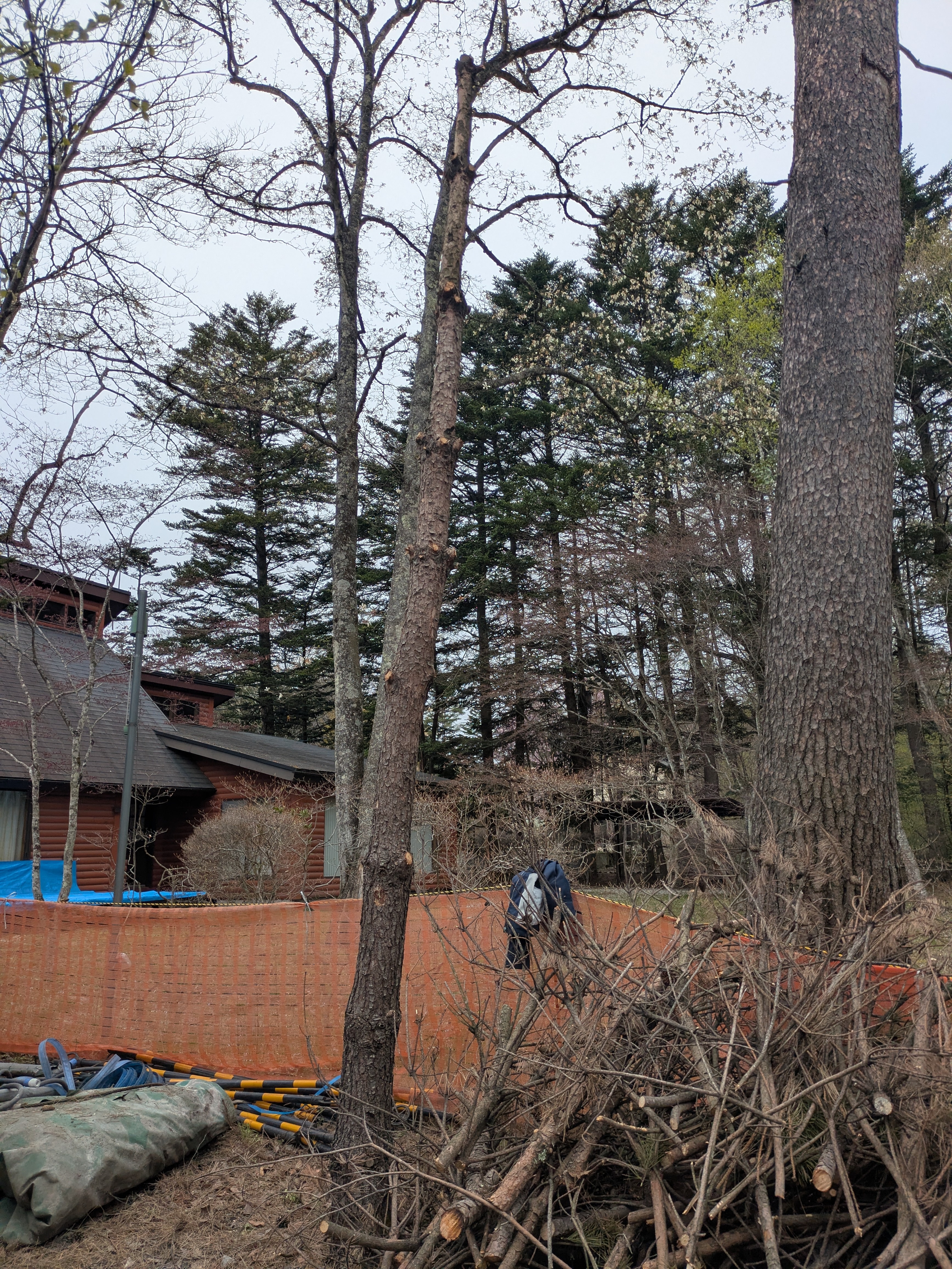 枯れた松三本の枝払い