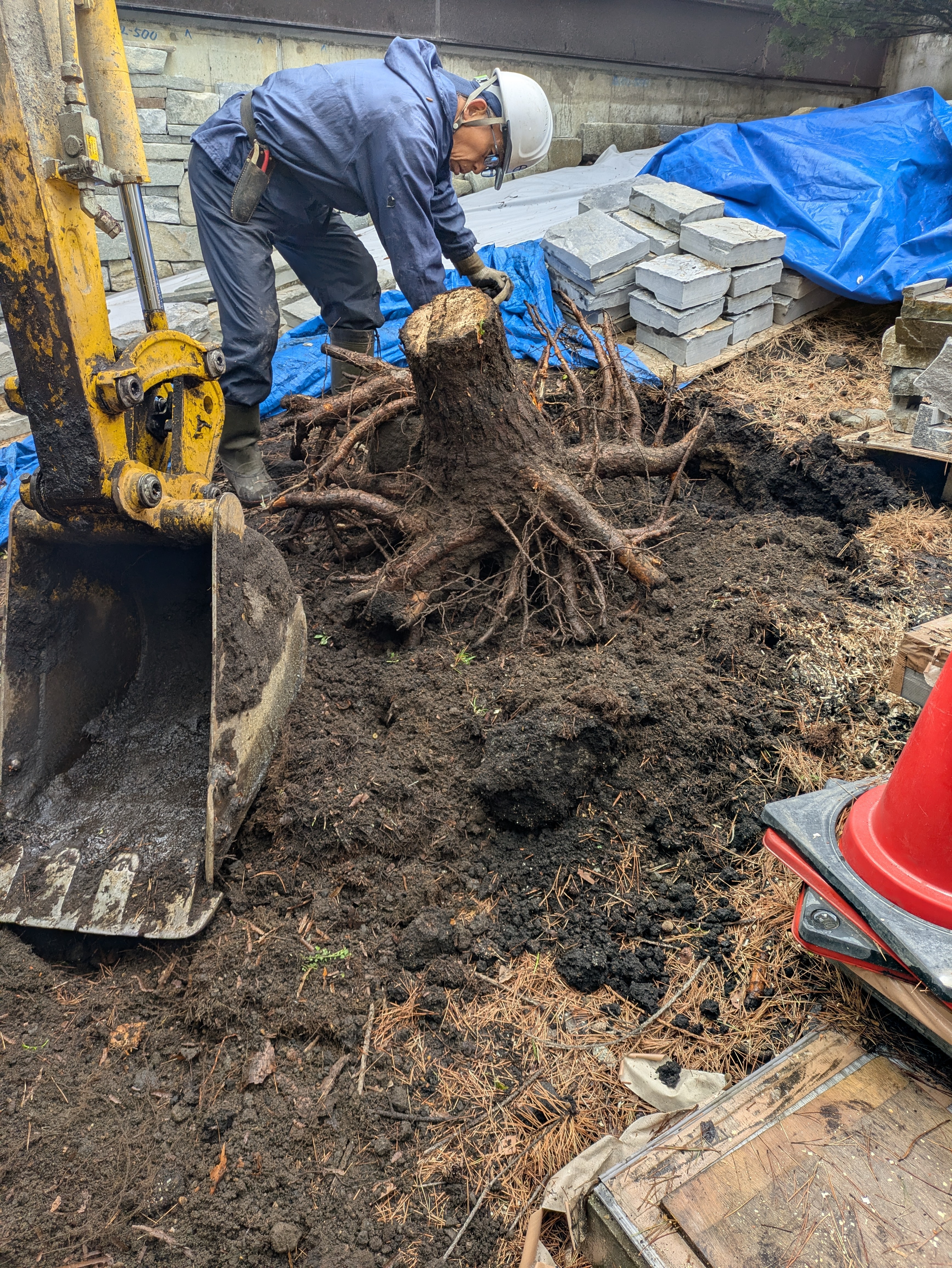 最終根っこを自社資材置き場へ下ろして終了です。