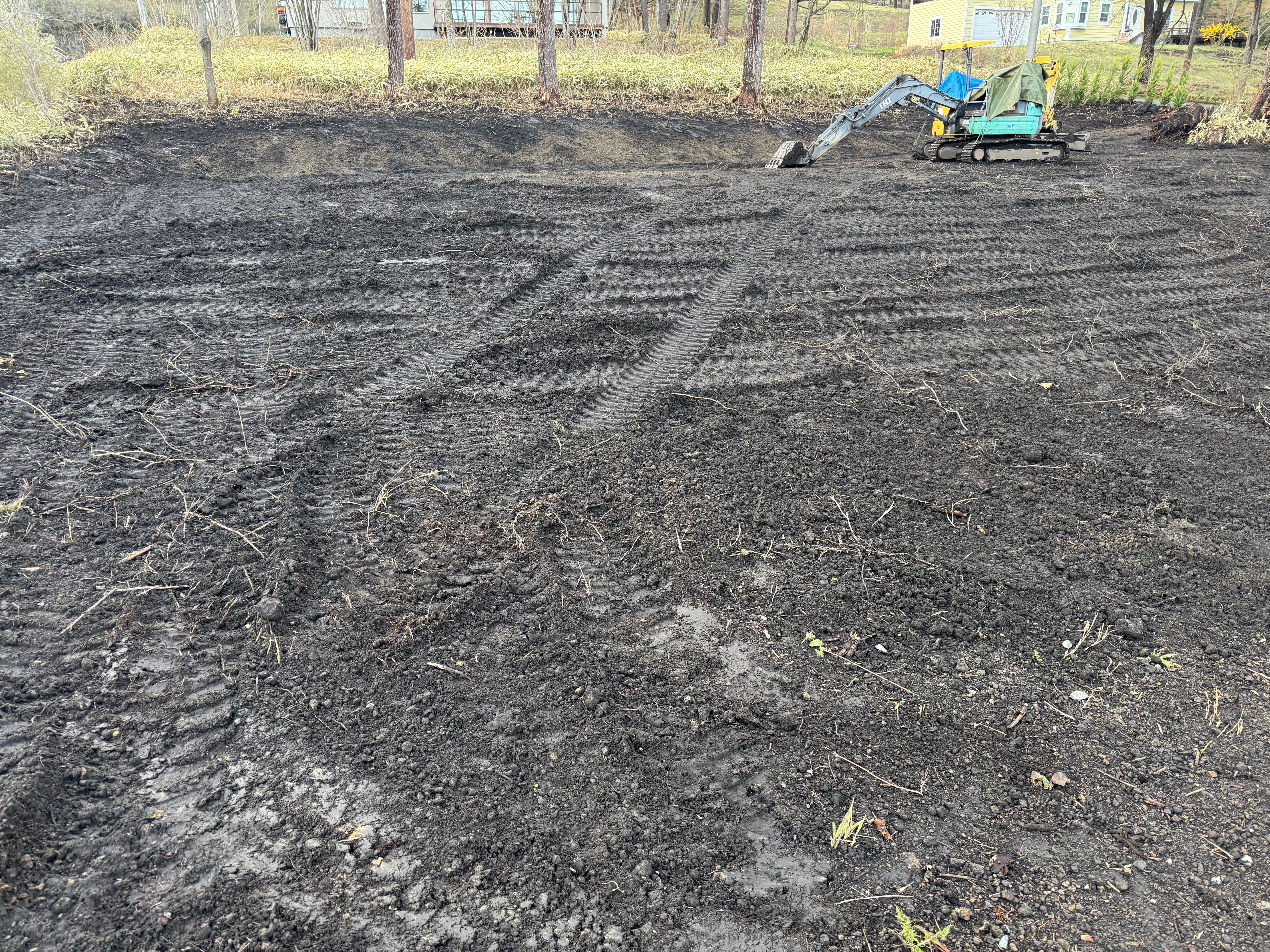 7時45分から17時50分、 KU様邸、抜根、大4個、中2個、表土剥ぎ、整地