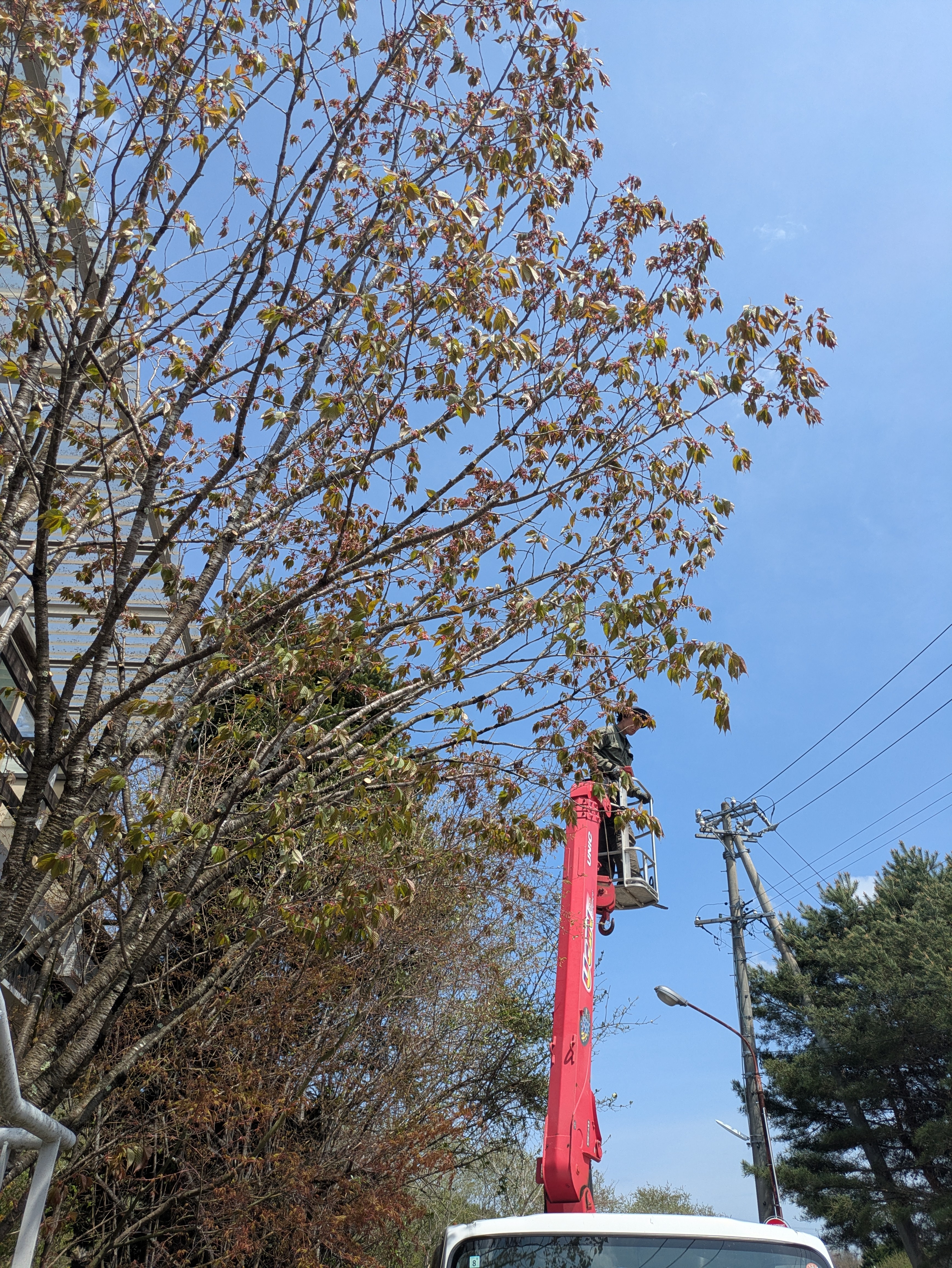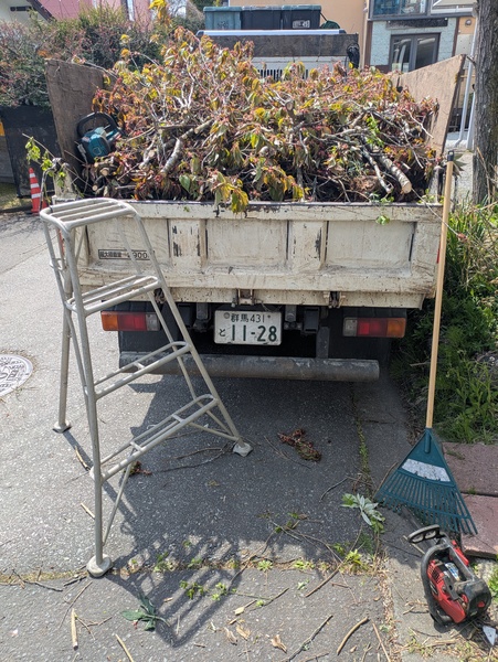 アカシア サクラ もみじ モミ シャラの剪定後枝ゴミ集め玉切り ダンプ積み込み