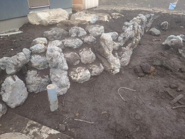 石積掘削、浅間石崩れ積み、h0.8mを15m位やる。17時まで。